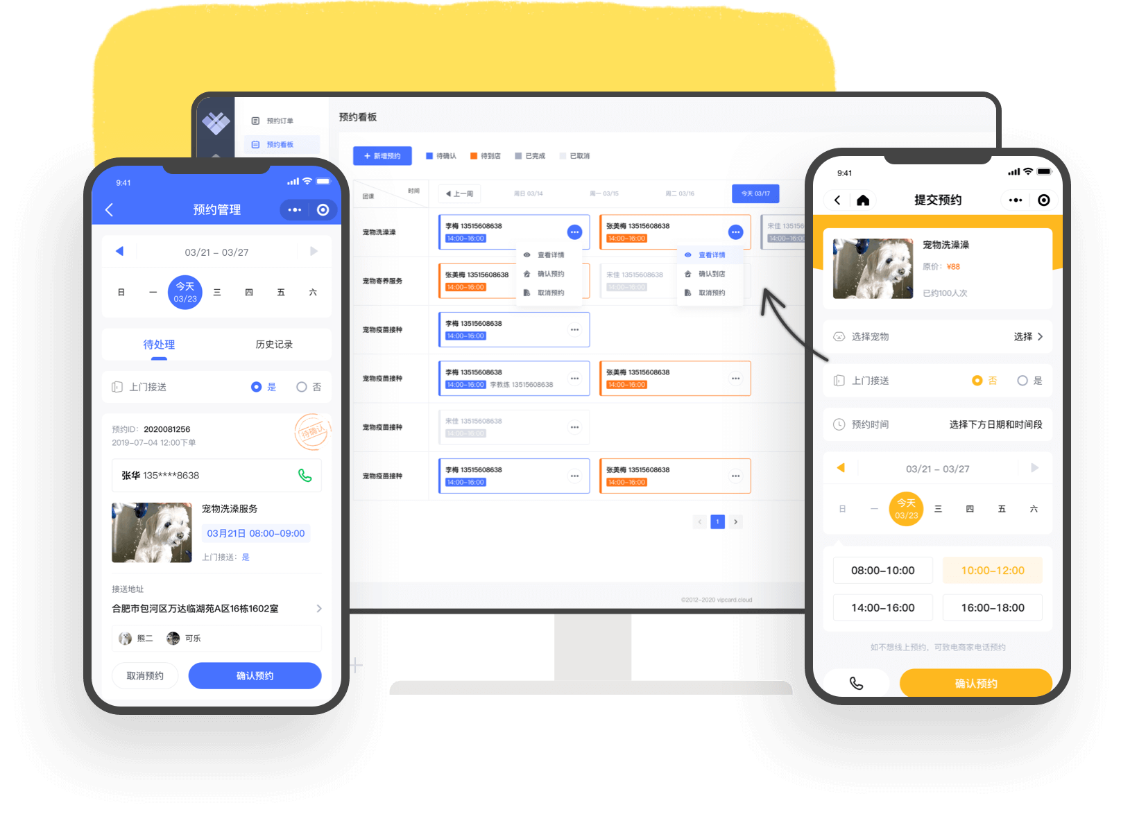 商家可以在管理后台看到预约订单以及看板,手机上也可以操作确认预约